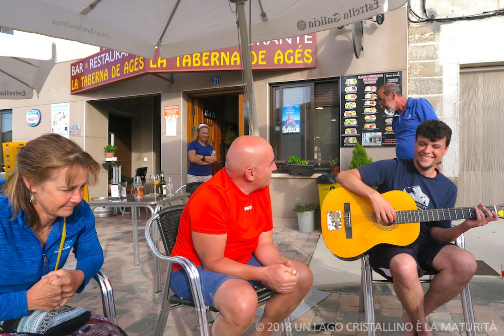 ギターを持った巡礼中の青年の周りで人が音楽を楽しんでいて、近くを通りがかったところ、「参加しなよ!」と音楽会に強制参加することになった。好きな曲をなんでもリクエストしていいよと言われたので、Beatlesをお願いする。そして一緒に歌う。音楽は、言葉以上に心と心で繋がれる。