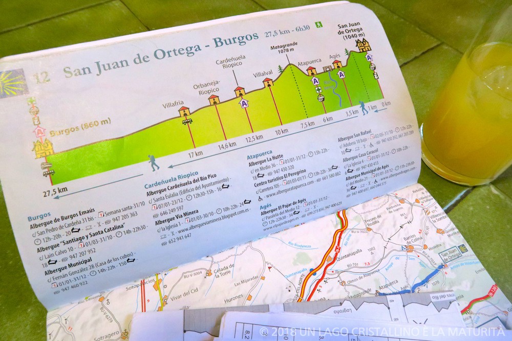 たどりついた山頂にはバルとアルベルゲ。もちろんオレンジジュースで休息をとり、来た道の距離と高低差を確認する。
