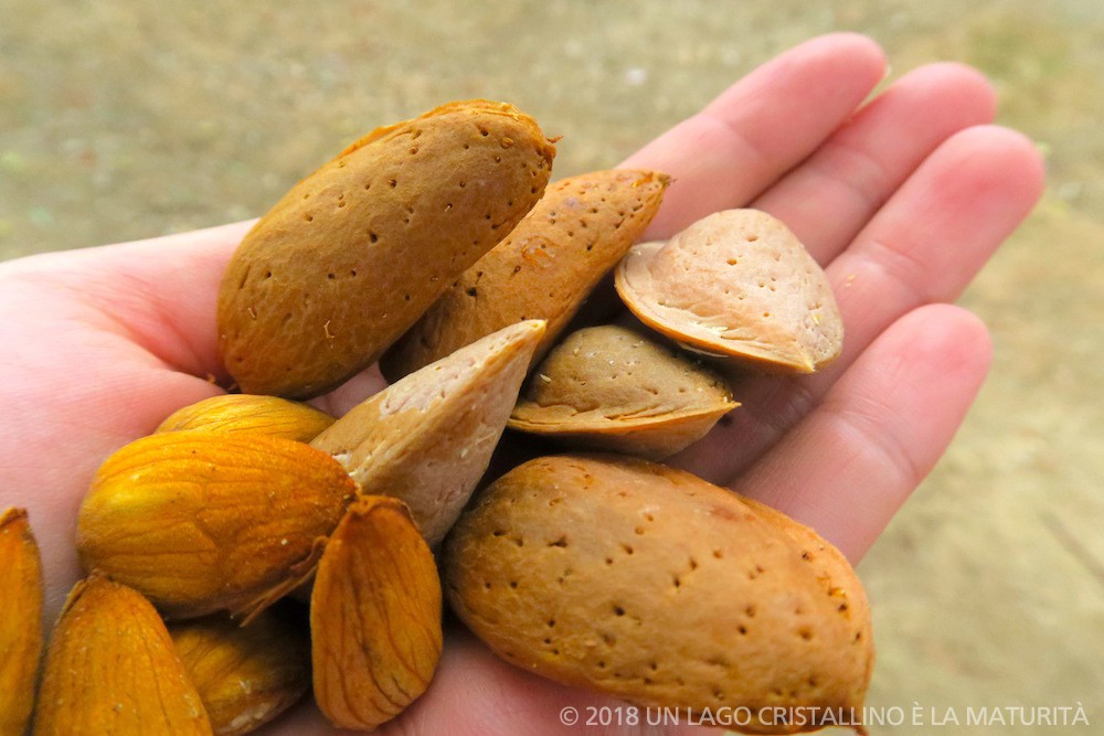 アーモンドの殻は硬い。最初にあざやかな緑色の殻につつまれていて、それを隙間からひらくと閉じた茶色い殻があらわれる。食べられるのはさらにこの中のもので、周囲に転がっている石で叩き、中の仁(じん)をとりだす、これがわたしたちが普段食べているアーモンド。そんなふうに自生するアーモンドを石で割って食べなんてはじめての経験だ。ある女の子は実をリュックのポケットいっぱいに詰めていて「まるで、冬ごもりをするリスみたいだね」と連れの彼が笑っていた。